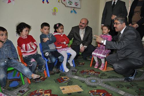 Kadın kursiyerlerle olan buluşmasının ardından, proje kapsamında açılan bilgisayar sınıfı ve kreşteki çocuklarla bir araya gelen Çınar, çocuklarla tek tek ilgilenerek, eğitmenlere, çocukların temizlikleri ve eğitimlerine önem vermeleri tavsiyelerinde bulundu. Projede yaptıkları inceleme sonunda değerlendirmelerde bulunan Vali Çınar; “Burası sevgi kapısı. Valiliğimiz SYDV ile Aile ve Sosyal Politikalar İl Müdürlüğünün ortaklaşa yürüttüğü bir projenin eseridir. Burada herkese açık, eğitim, kültür faaliyetleri ile ev hanımlarımıza boş zamanlarını verimli bir şekilde değerlendirme imkânı sunuyoruz. Kadınlarımız buraya gelirken okul çağında olan çocuklarını getirerek, burada bilgisayar ortamında eğitim almaları, daha küçük yaşlarda olan çocuklarına ise kreş imkânı sağlıyorlar. Kadınlarımız ve genç kızlarımız burada Halk Eğitim Merkezi faaliyet programı kapsamındaki eğitimlere katılarak, halıcılık, müzik, takı-tasarım gibi alanlarda kendilerini geliştiriyorlar. Biz sadece burada değil birkaç merkezde kadınlarımıza okuma-yazma eğitimi ve el becerilerine yönelik eğitimler veriyoruz.” Dedi.