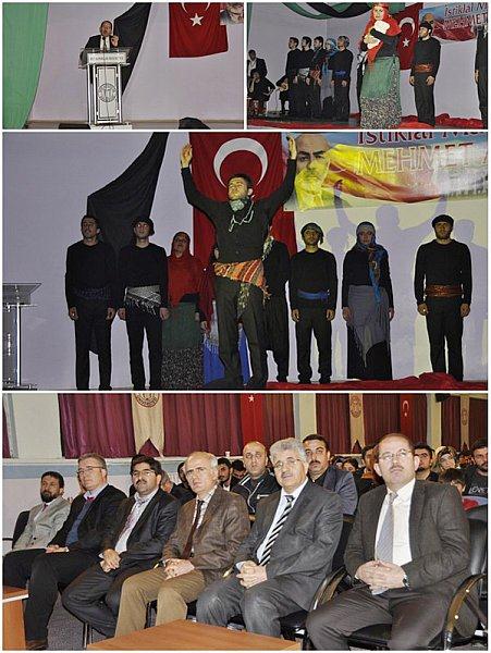 Muş Alparslan Üniversitesinde, İstiklal Marşı`nın Kabulünün 92. Yıl Dönümü ve Mehmet Akif Ersoy`u Anma programı düzenlendi. Anma programının açılış konuşmasını Rektör Vekili Prof. Dr. Osman Özcan yaptı. “Mehmet Akif’i anlamak için hayatının tüm dönemlerinin incelemek gerekir.” diyen Osman Özcan, Mehmet Akif’in Mısır’daki sürgün yıllarına değindi. Açılış konuşmasının ardından Gösteri Sanatları Topluluğun hazırlayıp sunduğu “Bu Cennet Vatan” adlı tiyatro oyunu sahnelendi. İzleyenlerin ilgiyle takip ettiği oyun sonrası kürsüye gelen Muş Alparslan Üniversitesi Öğretim Üyesi Yrd. Doç. Dr. Ramazan Şahan, “İlhamını Kur’an-ı Kerimden alan şair” konulu konferans verdi. Mehmet Akif’in dizelerinde Kur-an’ın tefsirini bulursunuz” diyen Ramazan Şahan, sözlerini okuduğu ayetler ve dizelerle açıkladı. Mehmet Akif’in tüm yönleriyle anlatıldığı programın sonunda izleyenlere İstiklal Şairimizin eseri olan Safahat kitabı hediye edildi.
