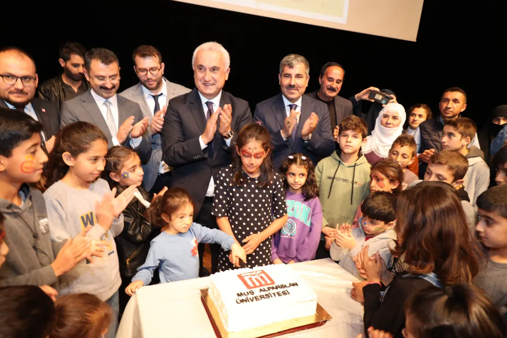 Alparslan Üniversitesi Rektör Yardımcısı ve Uygulamalı Bilimler Fakültesi Dekanı Prof. Dr. Yaşar Karadağ ve Çölyak Derneği Başkanı Züleyha Almaz'ın konuşmasının ardından çölyak hastaları ve aileleriyle birlikte pasta kesildi.