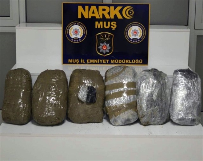 Muş Valiliğinden yapılan açıklamada, İl Emniyet Müdürlüğüne bağlı ekipler tarafından uyuşturucu madde ticareti yapan şahıslara yönelik operasyonel faaliyet düzenlendiği belirtildi. Açıklamada, "Yapılan şok uygulama sırasında durdurulan bir araç ve içerisindeki 2 şahsın yapılan aramasında, 6 parça halinde 10 kilo 600 gram ot esrar maddesi ele geçirilmiş olup, şahıslar çıkarıldıkları adli mercilerce tutuklanmışlardır" denildi.