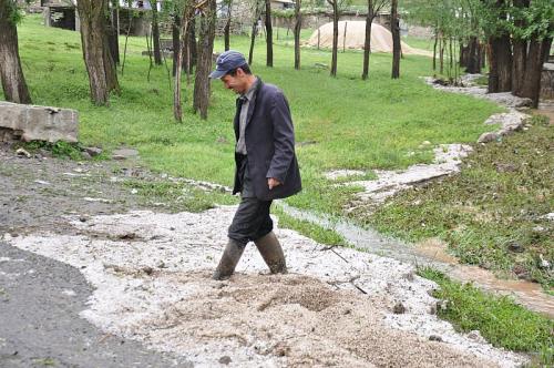 Ani dolu yağışının ciddi anlamda etkili olduğunu ifade eden Dölek, “Bu özellikle mevsim geçişlerinde yaşanabilecek hava koşullarından meydana gelen, lokal olarak etkisini gözlemlediğimiz bazı olaylarla karşılaştık. Özellikle böyle ani lokal yerel ısınmalara bağlı olarak meydana gelen kümrüst tarzı bulutlar ve bunlarla bağlantılı olarak alt ve üst katmalar arasında böyle çok belirgin ısı farkı olan bu bulutlarda dolu olayı gerçekleşiyor. Burada birkaç köyde bunlar ciddi anlamda etkili oldu. Tekrar ikinci defa gerçekleşince, hem yağış hem dolu hızla eriyerek lokal olarak bu bölgede bazı yerlerde sel yaşanmasına neden oldu küçük, lokal. Yalnız bu yağışla birlikte çamur akıntıları da meydana geldi. Çok büyük olmayışından dolayı evleri çok fazla bir şekilde etkilemedi ama yine bu mevsim geçişlerinde bu tür hava koşulları ve doğa olayları için biraz daha hazırlık olmak lazım. Dolu ve kuvvetli rüzgâr meydana geldiği zaman mümkün mertebe kapalı mekanların tercih edilip eğer açık alanda ise insanların bir çukur alana girip, kafalarını, hayatı organlarını bir şekilde kapatmaları gerekiyor” dedi.