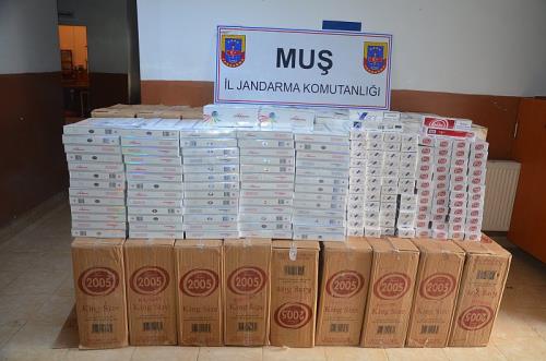 Muş İl Jandarma Komutanlığı tarafından Muş, Bitlis ve Van illerinde yapılan eş zamanlı operasyonlarda sigara kaçakçılığı yapmak amacıyla suç örgütü kurdukları iddiasıyla 9 kişi gözaltına alınırken 84 bin 655 paket kaçak sigaranın ele geçirildiği bild