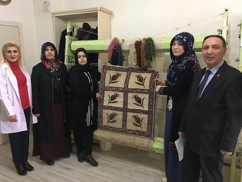 Kilim dokuma usta öğreticisi Şefkat Şener ise “Halı Dokuma Kursumuz İş-Kur ve Halk Eğitim Merkezi Müdürlüğü bünyesi altında açılan bir kursumuzdur. Kursumuzda 20 kursiyer eğitim görmektedir. Kursiyerlerimizin çoğu ev hanımından oluşmaktadır. Birincisi meslek edinme, ikincisi aileye katkıda bulunmak için 6 ay süre içerisinde açılan bir kursumuzdur. Bu kursumuzda genç kızlarımızın ve ev hanımlarımızın elleri çok yatkın. Kısa süre içerisinde mesleği öğreniyorlar. Bu sayede aile bütçelerine katkıda bulundukları gibi meslek sahibi de oluyorlar” dedi.