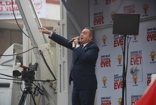 AK Parti Muş Milletvekili Mehmet Emin Şimşek, referandum mitinginde yaptığı konuşmada yatırım ve çalışmaları anlattı