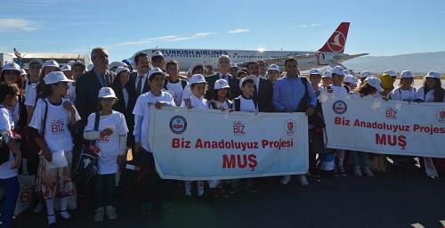 İçişleri Bakanlığınca 180 günlük eylem planı kapsamında hayata geçirilen `Biz Anadoluyuz` projesi kapsamında Muş`tan 200 öğrenci Aydın`a uğurlandı. Öğrenciler arasında kardeşlik köprüsünün kurulmasını amaçlayan ‘Biz Anadolu’yuz Projesi’ kapsamında 6-9 Ekim 2017 tarihleri arasında Vali Yardımcısı Abdulkadir Okay Başkanlığında Muğla programı gerçekleşmişti. Bugünde Vali Yardımcısı Alper Çifçi Başkanlığında yaklaşık 200 kişilik heyet Aydın iline gitmek üzere havaalanından uğurlandı.