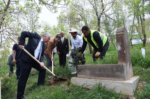 Muş Belediyesi Park ve Bahçeler Müdürlüğü´ne bağlı ekipler tarafından Şehir Mezarlığında yeşillendirme çalışmaları başlatıldı