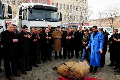 Muş Belediyesi önünde düzenlenen törende yeni alınan 5 kamyon, 1 kazıcı kepçe, 1 süpürge aracı, 1 kar küreme aracı, 3 binek araç, 1 makam aracı kurban kesimi ve dualarla hizmete sokulurken, 1 cenaze yıkama aracı, 1 cenaze nakil aracı, 1 loder ve 1 kepçenin de önümüzdeki günlerde belediye araç parkına kazandırılacağı kaydedildi.