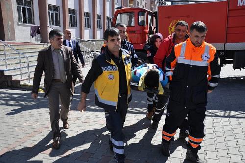 İl Afet ve Acil Durum Müdürü İbrahim Tanış ve AFAD Yönetim Merkezi Müdürü Maşallah Yıldız, tatbikat öncesi okul idareci ve öğretmenlerini bilgilendirdi. Ardından İtfaiye, 112 ekipleri ve AFAD ekiplerinin hazırlanması ile birlikte belirlenen saatte sirenler çaldırıldı. Daha sonra dersliklerde eğitim gören öğrenciler okuldan tahliye edildi. İtfaiye ekipleri üst katlarda öğrencilerin tahliyesine destek verirken 112 ekipleri ise yaralı öğrencileri sedye ile ambulanslara taşıdı. Gerçeği aratmayan tatbikat başarılı bir şekilde tamamlandı.