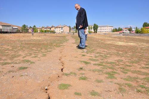 Muş Şehir stadyumunun hemen alt kısmında depremden sonra meydana gelen çatlak ve yarıkların mahallede yaşayan insanlar üzerinde üzerine paniğe neden olması üzerine sahada incelemelerde bulunan Muş Afet Araştırma, Uygulama ve Yönetim merkezinden Yrd. Doç. Dr. İskender Dölek, “arazide oluşan bu yarık ve çatlaklar fay değil, deprem sırasında oluşan sarsıntılara bağlı olarak yüzey yayılması olarak ifade edilebilecek şekiller” olduğunu söyledi. Çatlakların meydana geldiği bölgede titiz bir çalışma yapan Yrd. Doç. Dr. Dölek, “Hatta tam olarak yüzey yayılması olarak ta ifade edebiliriz. Derin olmayan bir kayma düzlemi üzerinde meydana gelen toprak deformasyonu olarak ifade etmek belki daha doğru bir tanımlama olur” dedi. Geçen hafta içerisinde meydana gelen depremler sonrasın arazi incelemelerinde köylerde özellikle Varto Kayalık köyünde benzer şekillere rastladıklarını ifade eden Yrd. Doç. Dr. Dölek “aslında her yaşanan deprem yerle ilgili bilgi birikimimizi artırmaktadır. Muş gibi İmarsız ve kontrolsüz bir şekilde yapılaşsan bir şehirde bazı şeyleri bir kaç defa düşünmek gerekiyor” dedi.