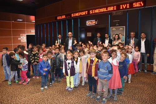 İlk olarak sineme salonuna getirilen öğrenciler, burada yaş gruplarına göre film izleyerek heyecanlarını gizleyemediler. Filmden sonra yemek ikramına geçen öğrenciler unutulmaz bir gün geçirdiler.