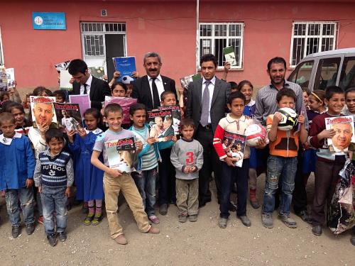 Muş Amatör Spor Kulüpleri Federasyonu (ASKF) Başkanı Kemal Türkan, Muş merkeze bağlı Özdilek köyündeki öğrencilere kırtasiye ve spor malzemeleri dağıttı