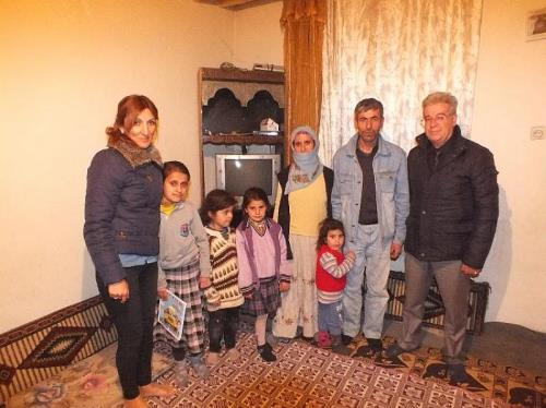 İzmir Kanserle Mücadeleyi Destekleme Derneği´nden iki yetkili, Muş´un Malazgirt ilçesinde yaşayan kemik erimesi, cilt kanseri hastası ve başında ur bulunan 14 yaşındaki Arzu Kaya´yı ziyaret etti