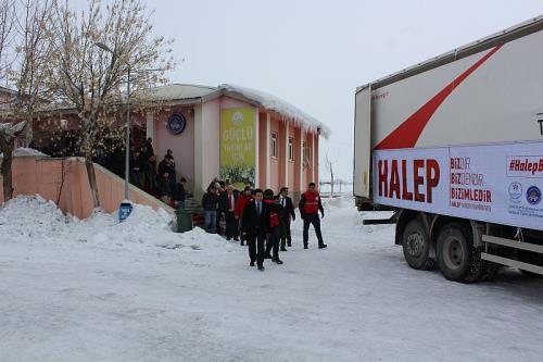 Yüksek Öğrenim Kredi ve Yurtlar Kurumu (KYK) Genel Müdürlüğü tarafından başlatılan Halep’e yardım kampanyası kapsamında Muş’ta öğrenciler tarafından toplanan yardımlar hafta sonu düzenlenen törenle Kızılay’a ait kamyonla Halep’e gönderildi.