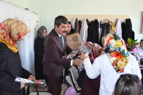 Belediye Başkanı Feyat Asya, Öğretmenler Günü dolayısıyla İlci İnşaat Anadolu Kız İmam Hatip Lisesi öğretmenleri ile bir araya gelerek kendilerine karanfil verdi