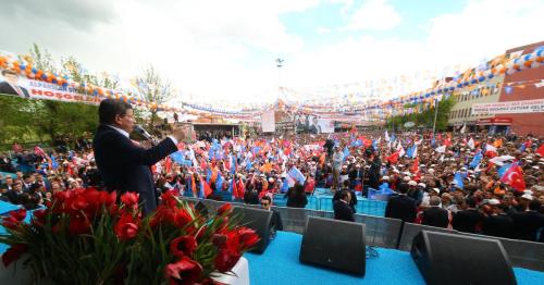Başbakan Ahmet Davutoğlu, Muş belediye meydanında toplanan kalabalığa hitap etti. Davutoğlu’nu büyük bir coşku içinde karşılayan Muşlular, sık sık Ak Parti lehine slogan attı. Olağanüstü güvenlik önlemlerinin alındığı miting alanı çevresinde özel harekât polisleri stratejik noktalara yerleştirildi. Bazı polislerde yüksek binaların üzerine çıkarak türbinle etrafı kontrol etti