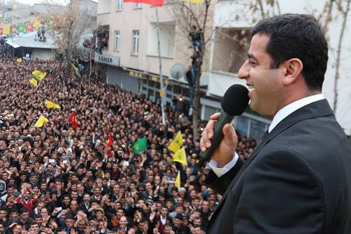 Mitingde konuşan Eş Genel Başkanı Selahattin Demirtaş, 30 Mart seçimlerinde birliktelik ruhunun sandıklara yansıyacağını belirterek, “Allah’ımıza şükür ki Kürt halkı işte bu şekilde ayağa kalkmış. Çözüm isteyenler bu tabloya baksınlar. 30 Mart seçimlerinde de bütün bu birlikteliğin ruhu sandıklara yansıyacak. Ardahan’dan Hakkari’ye, Muş’a güzel sonuçlar çıkacak. Kürdistan BDP’nin meşe dalları ile süslenecek. Burada artık hiç kimse tek bir oyu bile satın alamaz. Bu irade satın alınamaz. Üç beş torba makarna ile bu halkı kandıracaklarını sanıyorlardı oysa tablo ortaya çıkınca öyle olmadığı anlaşıldı. Kürt halkı onları parmağında oynatır” diye konuştu.