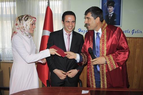 Belediye Başkanı Feyat Asya, göreve başlamasının ardından cübbeyi giyerek Esranur Kalkan ile Mehmet Emin Budak çiftinin nikah akdini gerçekleştirdi. Esranur Kalkan ile Mehmet Emin Budak çiftinin Belediyemize yapmış olduğu müracaat sonucunda evlenmelerinde hiçbir mahsur olmadığı tespit edilmiş olup Belediye Başkanı Asya tarafından çiftin nikâhları kıyılmıştır.