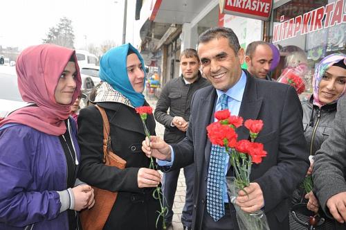 Barış ve Demokrasi Partisi (BDP) Muş Belediye Başkan Adayı Nimet Sezgin, yoldan geçenlere ve esnaflara kırmızı gül dağıttı. Sezgin Gül dağıtırken; ´´Belediye´yi de Gül gibi yöneteceğiz mesajını verdi