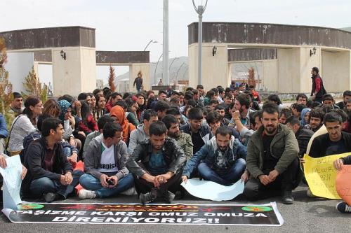 Gazetecilerinde kampüse alınmamasına tepki gösteren öğrenciler özel güvenlik görevleri arasında kısa süreli arbede yaşandı. Arbedenin ardından öğrencileri ve gazetecileri içeriye almak zorunda kalan güvenlik görevlileri, öğrenciler tarafından yuhalandı. Rektörlük binası önünde bir araya gelen öğrenciler, “Rektör ma illa pislik mi çıkaraq”, “Newroz`u direniş kılan Kawa`ya bin selam” dövizleri taşıyarak, “Bijî Newroz”, “Baskılar bizi yıldıramaz”, “Rektör istifa” sloganları attılar.