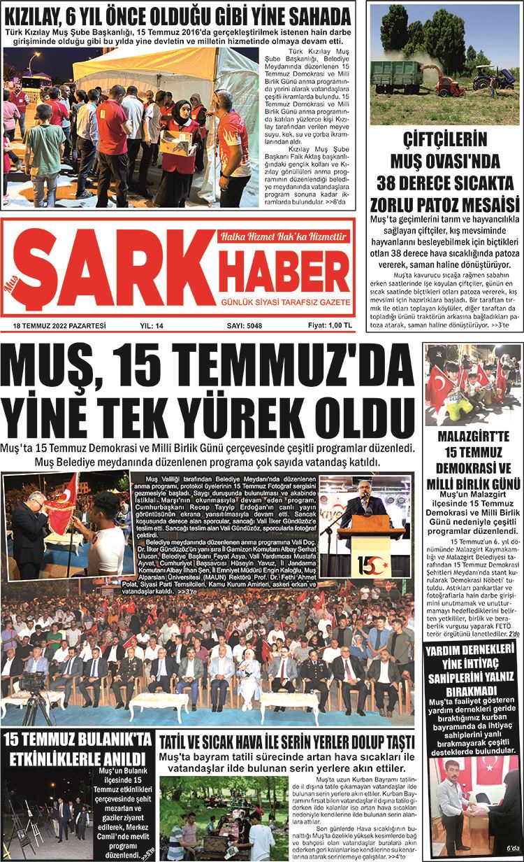 Muş Emniyet Müdürü Faik Aksu, Türk Polis Teşkilatının 169. Kuruluş Yıl Dönümü münasebetiyle kentte ‘Polis Haftası’ etkinliklerinin tamamlandığını belirtti. Makamında basın toplantısı düzenleyen İl Emniyet Müdürü Faik Aksu, polis haftası boyunca çeşitli etkinlikler düzenleyeceklerini açıkladı. Programın 4 Nisan 2014 Cuma günü protokol ziyaretiyle başlayacağını ifade eden Faik Aksu, aynı gün kurban keseceklerini ve akşam namazını müteakip mevlit okutacaklarını söyledi. 7 Nisan 2014 Pazartesi günü emniyet mensuplarının yemekte bir araya geleceğini vurgulayan Aksu, ayrıca aynı gün Kızılay’a kan bağışı düzenleyeceklerini söyledi. Geleneksel hale gelen basınla dostluk maçının 8 Nisan 2014 Salı günü yapılacağını ifade eden İl Emniyet Müdürü Aksu, hafta boyunca polis sergisi, şehit aileleri ve malulleri derneği ziyareti, şehit ailesi ziyaret, ziyaretlerin kabulü ile devam edeceğini söyledi.