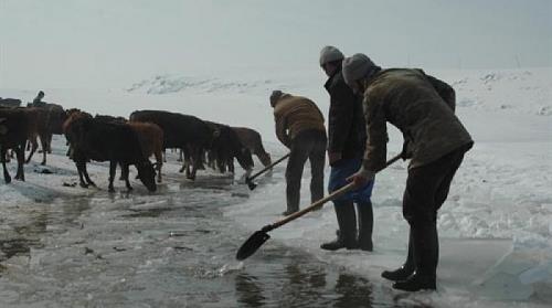 Kar kalınlığının 23 santim olduğu, en düşük hava sıcaklığının sıfırın altında 24 derece olarak ölçüldüğü Muş`un Varto İlçesi`nin Tepe Köyü`nden geçen Zirink Çayı`nın donması sonucu köylüler kürek ve baltalarla buzları kırıp su çıkarıyor. Köylüler hayvanlarına yüzeyi buz tutan derenin suyunu içiriyor. Geçim kaynaklarının hayvancılık olduğunu söyleyen köylülerden Murat Özdemir, "Hayvanlarımıza sabah ve akşam derenin suyunu içiriyoruz. Dereni buzlarını sırayla kırıyoruz" dedi. Öte yandan Meteoroloji Bölge Müdürlüğü`nden alınan bilgiye göre dün gece en düşük hava sıcaklıkları sıfırın altında olmak üzere Erzurum Havalimanı`nda 27, Ağrı`da 26, Muş ve Kars`ta 24, Ardahan`da 19, Erzurum kent merkezi, Erzincan ve Iğdır`da da 16 derece olarak ölçüldü.