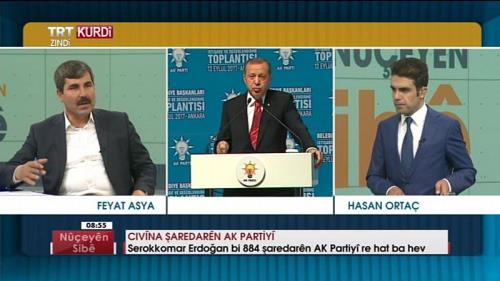 TRT Kurdi’de yayınlanan ve Hasan Ortaç’ın sunuculuğunu yaptığı Sabah Haberleri programının canlı yayın konuğu olan Belediye Başkanı Feyat Asya, AK Partili Belediye Başkanlarının istişare toplantısından, Arakan’da yaşanan drama kadar birçok konuda değerlendirmelerde bulundu.