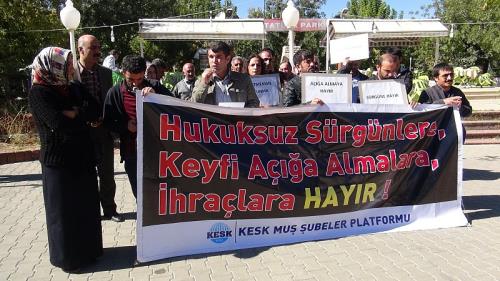 Kamu Emekçileri Sendikaları Konfederasyonu (KESK) Muş Şubeler Platformu, okulların açılmasına on gün kala 9 bin 800´ü sendikalarından ve Eğitim Sen üyesi olmak üzere toplam 11 bin 301 eğitim emekçisinin açığa alındığını açıkladı