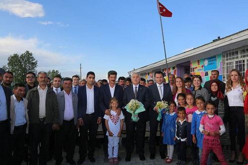 Vali Yıldırım ve beraberindekileri Değirmensuyu İlkokulu bahçesinde Köy Muhtarı Sait Daş, köylüler ve Değirmensuyu İlkokulu öğretmen ve öğrencileri karşıladı.