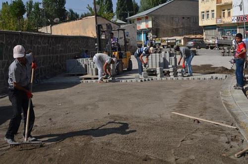 Malazgirt Belediyesinin ilçe merkezinde başlatmış olduğu parke taşı döşeme çalışmaları tüm hızıyla devam ediyor