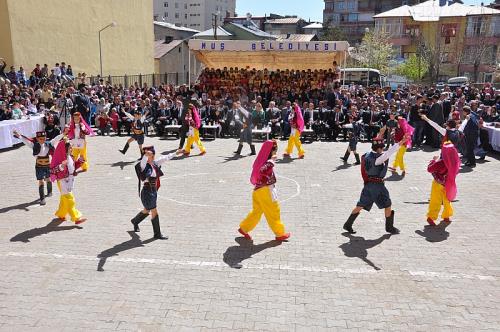23 Nisan Ulusal Egemenlik ve Çocuk Bayramı’nın 94. yılı bütün Türkiye’de olduğu gibi Muş’ta da çeşitli etkinliklerle kutlandı. Sabah saat 09.00’da hükümet konağı önünde bulunan Atatürk büstüne çelenklerin konulması ile başlan tören Türk Telekom İlkokulu bahçesinde devam etti. Törenin açılış konuşmasını yapan Türk Telekom İlkokulu Müdürü Veysel Aydın, Atatürk’ün, 23 Nisan 1924`te `23 Nisan` gününün bayram olarak kutlanmasına karar verdiğini hatırlattı. Aydın, “23 Nisan 1920, Türk milletinin iradesini temsil eden Birinci Büyük Millet Meclisi’nin açıldığı ve Türk halkının egemenliğini ilân ettiği tarihtir. Bu tarihten 5 yıl sonra 23 Nisan 1929’da Atatürk bu bayramı çocuklara armağan etmiştir ve 23 Nisan ilk defa 1929 yılında Çocuk Bayramı olarak da kutlanmaya başlanmıştır. 1979`da, yine ilk olarak altı ülkenin katılmasıyla uluslararası boyuta taşıdığımız bu milli bayramımıza, ortalama olarak her yıl kırkın üzerinde ülkeden gelen ve Türk çocuklarının misafiri olan yabancı ülke çocukları da katılmaktadır. Dünya’da çocuklarına bayram hediye eden ve bu bayramı bütün dünya ile paylaşan ilk ve tek ülke Türkiye’dir” dedi. Büyük Önder Atatürk’ün düşüncesinde çocukların, milletin geleceği olduğunu vurgulayan Aydın, “Onlara duyduğu sarsılmaz güvenin ve büyük sevginin ifadesi olarak, millî bayramımız olan 23 Nisanlar’ı çocuklara armağan etmiştir. Tarihimizin gurur dolu sayfalarının yeni nesillerce öğrenilmesi ve Türk Devleti’nin devamını emanet edeceğimiz yeni Cumhuriyet bekçilerinin bu bilinçle yetişmesi amacıyla 23 Nisanlar, önemli birer vesiledir” ifadelerini kullandı. Yapılan konuşmanın ardından öğrenciler tarafından hazırlanan şiirler okunup, gösteriler sunuldu.