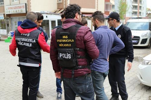 İl Emniyet Müdürlüğü ekiplerinin il genelinde uyuşturucu ile mücadele çalışmalarıyla ilgili açıklama yapıldı. Valilikten yapılan açıklamada: “Muş İl Emniyet Müdürlüğü ekiplerince uyuşturucu ile mücadele kapsamında sokak satıcılarına yönelik yapılan çalışmalarda; “Uyuşturucu ve Uyarıcı Madde Ticareti Yapmak” suçundan 8 yıl 4 ay kesinleşmiş hapis cezası ile aranması bulunan bir şahıs çıkarıldığı adli mercilerce tutuklanmıştır. İl Merkezinde yapılan yol uygulamalarında bir şahsın üzerinden 1 gr metamfetamin maddesi ele geçirilmiştir. Şahıs hakkında “Kullanmak Amacıyla Uyuşturucu veya Uyarıcı Madde Satın Almak, Bulundurmak, Kabul Etmek” suçundan işlem yapılmıştır. 12 Aralık 2017 tarihinde Malazgirt İlçe Emniyet Müdürlüğü ekiplerince yapılan bir şahsın üzerinden 3 gr afyon sakızı ele geçirilmiştir. Şahıs hakkında “Kullanmak Amacıyla Uyuşturucu veya Uyarıcı Madde Bulundurmak, Kabul Etmek veya Satın Almak” suçundan işlem yapılmıştır.