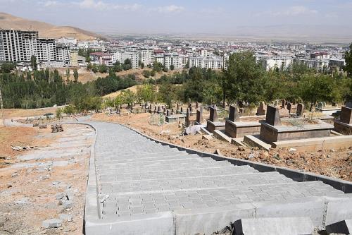 Muş Belediyesi Fen İşleri Müdürlüğü’ne bağlı ekipler çalışmalarını aralıksız sürdürüyor. Kazı ve döşeme çalışmalarından dolayı cadde ve sokaklarda oluşan tahribatlarını gideren ekipler, mezarlıkların da bakım ve onarımını yapıyor. Muş’un en büyük mezarlıklarından biri olan Şehir Mezarlığı’nda başlatılan yol genişletme, bakım, onarım ve çevre düzenleme çalışmaları hız kesmeden devam ediyor. Mezarlık alanındaki patika yollar parke taşı ile döşenirken, vatandaşların oturabileceği bank ve kamelyalar da kuruluyor. Öte yandan patika yolların kenarlarına su giderleri yapılırken, mezarlık alanında kapsamlı bir yeşillendirme yapılıyor.