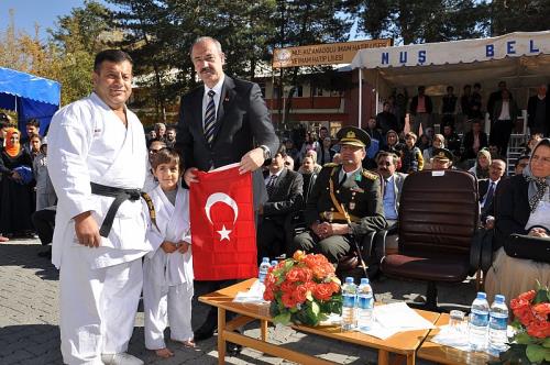 Cumhuriyet idaresinin, halkın hürriyetini esas aldığını hatırlatan Vali Büyükersoy Büyükersoy, “Cumhuriyet, millet egemenliğine dayanır, gücünü millet iradesinden alır” dedi. Cumhuriyetin ifade özgürlüğü, birlik ve beraberlik olduğunu kaydederek milli iradenin hakim olduğu bir yönetim şekli olduğunu ifade eden Büyükersoy, “Cumhuriyet, herkesin birinci sınıf vatandaş olduğu, insan hak ve özgürlüklerinin, inançların güvence altında bulunduğu çağdaş bir yönetim biçimidir. Unutmayalım ki cumhuriyetimizin kuruluş felsefesinde, kuruluş amacında bu topraklarda yaşayan hiç kimseyi ötekileştirmek, dışlamak, küçük görmek, aşağılamak yoktur. Bu cumhuriyet, bu vatan hepimizindir. Etnik kökeni, inancı, yaşama biçimi ne olursa olsun her vatandaş cumhuriyetin teminatı altındadır. Bundan dolayıdır ki 90. yıldönümünde cumhuriyeti aynı duygu birliği ve gururla hep birlikte heyecan ve coşku içinde kutlamaktayız. Bu anlamlı günde istiklal mücadelemizin bütün kahramanlarını, eşsiz fedakarlıklarıyla milletimizin gönlünde ölümsüzleşen bütün şehit ve gazilerimizi rahmetle, şükranla anıyoruz” dedi. Öte yandan törene Muş Hava Meydan Komutanı Hava Albay Cemkabakçı, Vali Yardımcıları Hüseyin Göktürk, Fatih Demir ve Haluk Çakmak, Cumhuriyet Başsavcısı Hasan Kaya, İl Emniyet Müdürü Muharrem Durmaz, Kurum Amirleri, okul idarecileri ve öğrenciler katıldı. Tören, Gençlik ve Spor hizmetleri İl Müdürlüğü sporcularının karate gösterisinin ardından halk oyunları gösterisi, şiirlerinin okunması ve resmigeçit töreni ile sona erdi.