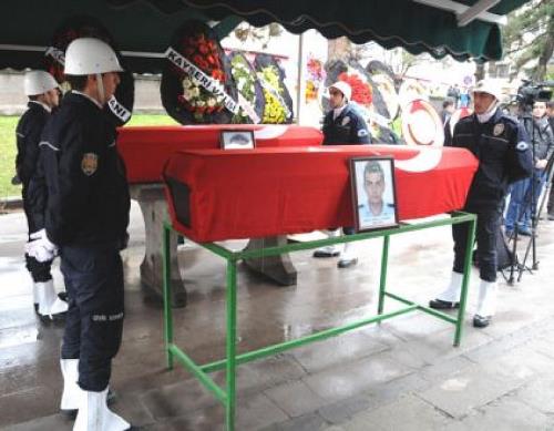 Cenazeler tören alanına getirildiğinde aileler tabutların başında uzun uzun gözyaşı döktü, aileler şehitlerin mesai arkadaşları tarafında teselli edildi. Tabutları bırakmak istemeyen şehit annesi Hatice Kılıç baygınlık geçirince 112 Acil Servis ekipleri müdahale etti. Törene katılan polis memurları ile İl Emniyet Müdürü Aydın da gözyaşlarını tutamadı. Şehitlerden Resul Erdal Aydemir ile Ömer Aktaş Kayseri`de toprağa verilecek. Şehit Abdullah Kılıç`ın cenazesi ise defnedilmek üzere memleketi Sivas`a gönderildi.