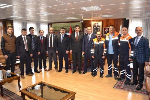 Muş Afet ve Acil Durum (AFAD) İl Müdürü İbrahim Tanış ve AFAD ekibi Belediye Başkanı Feyat Asya´yı makamında ziyaret etti