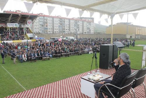 Muş Şehir Stadyumu’nda halkın yoğun katılımıyla "Kutlu Doğum" etkinliği düzenledi. Peygamber Sevdalıları Platformu Muş Koordinatörlüğü tarafından "Hak ve Adalet Rehberi Hz. Muhammed (sav)" temasıyla düzenlenen Kutlu Doğum etkinliğine vatandaşlar yoğun ilgi gösterdi. Peygamber Sevdalıları Platformu Muş İl Koordinatörlüğü tarafından bu yıl 8’incisi düzenlenen "Kutlu Doğum" etkinliğinde, alana ulaşımın rahat sağlanması amacıyla belediye araçları vatandaşları ücretsiz taşıdı. Yoğun güvenlik önlemlerinin alındığı etkinliğe gelenler, meydanın çevresinde kurulan polis kontrol noktalarından geçtikten sonra alana girebildi.
