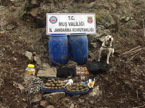 Muş İl Jandarma Komutanlığı ekipleri tarafından yürütülen çalışmalar sonucunda, PKK/KCK bölücü terör örgütüne ait çok sayıda el bombası, fünye ve mühimmat ele geçirildi