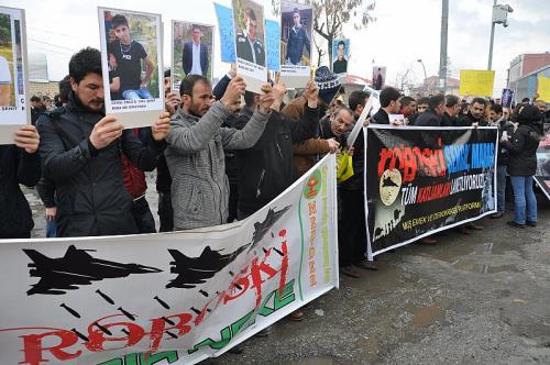 Muş Emek ve Demokrasi Platformu, Uludere (Roboski)’de savaş uçaklarının bombardımanı sonucu ölen 34 kişi için yürüyüşlü eylem düzenledi. Halkların Demokratik Partisi (HDP), Demokratik Bölgeler Partisi (DBP) yönetiminin ve çok sayıda kişinin katıldığı protesto yürüyüşü Cumhuriyet caddesinden belediye meydanına kadar devam etti. Polis, izinsiz yürüyüşün düzenlendiğini belirterek pankart, slogan ve yol işgalinin olması halinde müdahale edeceği söylemleri üzerine kısa süreli gerginlik yaşandı. Polis eşliğinde belediye meydanına kadar yürüyen grup daha sonra pankartlar açarak sloganlar attı. DBP Muş Eş Başkanı Nursel Yiğit’in basın açıklamasından sonra HDP Genel Başkan Yardımcısı ve Muş Milletvekili Demir Çelik, bir konuşma yaptı.