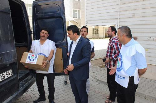 Eğitim Bir-Sen Muş Şube Başkanlığı, Ramazan ayı dolayısıyla verilen iftar yemeklerini iptal ederek buraya aktaracağı kaynağı Suriyeli ailelere ve ihtiyaç sahibi ailelere yardıma dönüştürdü. Daha önce belirlenen aileleri tek tek ziyaret eden sendika yöneticileri, yardım kolilerini ailelere teslim ettiler. Yapılan yardımla ilgili gazetecilere açıklamalarda bulunan Eğitim-Bir-Sen Şube Başkanı Mahir Barışan, Memur-Sen ve Eğitim-Bir-Sen`in ümmet coğrafyasında yaşanan mağduriyetlere kayıtsız kalmadığını belirtti. Mahir Barışan: "Mensubu olduğumuz medeniyetin insan ve hak temalı paradigması üzerinden hayata geçirdiğimiz, değer odaklı her durum ve şartta mazlumun ve mağdurun yanında olmayı kendine şiar edinmiş mücadelesini bu eksene oturtmuş Memur Sen ve Eğitim Bir Sen, bölgemizde, ülkemizde ve ümmet coğrafyasında yaşanan mağduriyetlere bigane kalmayarak bana ne demeyerek Ramazan ayı boyunca yurt genelindeki iftar programlarını iptal etmiş, iftarı infaka dönüştürerek binlerce mağdurun ve fakirin ocağını ve aşını şenlendirmiş kimsesiz olmadıklarını bu yolla göstermiştir" dedi.