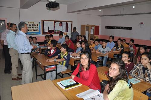 Muş Milli Eğitim Müdürlüğü, yaz tatili nedeniyle okullarda Hazırlayıcı ve Yetiştirici kursları açtı. Okullarda açılan kursları inceleyen İl Milli Eğitim Müdürü Cevdet Arslan ve Şube Müdürü Ali Çelik, öğrencilerle bir araya geldi. Merkez Prof. Dr. Vahit Özmen Ortaokulunu ziyaret eden İl Milli Eğitim Müdürü Cevdet Arslan, öğrencilere bazı tavsiyelerde bulundu. Temel Eğitimden Ortaöğretime Geçiş (TEOG) sınavında Türkiye birincisi olan ve çok zor şartlarda başarı elde eden Ezgi Beytaş ve diğer iki öğrenciyi örnek gösteren Milli Eğitim Müdürü Arslan, her zaman çalışanın başarılı olabileceğini söyledi.