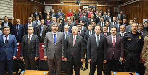 Valilik toplantı salonunda düzenlenen programa; Vali Aziz Yıldırım, Belediye Başkanı Feyat Asya, Cumhuriyet Başsavcısı Ömer Mete, Vali Yardımcısı Alper Çifçi, İl Emniyet Müdürü Zafer Aktaş, İl Jandarma Komutanı Albay İsmail Şahin, ilçe kaymakamları, protokol üyeleri, kurum müdürleri, kanaat önderleri, STK temsilcileri ile paydaş kurum temsilcileri katıldı.
