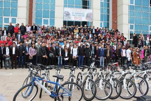 Muş Alparslan Üniversitesi öğrencileri, ‘Sağlık Günleri’ kapsamında sağlıklı yaşama dikkat çekmek için bisiklete bindi. Muş Alparslan Üniversitesi Rektörü Prof. Dr. Fethi Ahmet Polat, şenliğe katılan öğrencilere başarı dilemesinin ardından idari personeller, öğretmen ve öğrenciler kampüs yerleşkesinde bisikletle tur attılar. Daha sonra bir konuşma yapan MŞÜ Rektörü Polat, 12 Mayıs Dünya Hemşireler Günü nedeniyle birçok üniversitede sağlıklı yaşam etkinlikleri kapsamında çeşitli faaliyetler yapıldığını söyledi. Sağlıklı yaşama dair fiziki anlamda, ruhi anlamda, sosyalleşme anlamında bir konferans sunumu gerçekleştirdiklerini belirten Rektör Polat, “Bugün de burada öğrencilerimizle birlikte aşağı yukarı 150-200 bisikletimiz var. Bisikletle birlikte bir etkinlik gerçekleştireceğiz. Bir farkındalık oluşturmak istiyoruz, çünkü Türkiye’de hakikaten obezite konusunda ciddi bir yükselme söz konusu. İlkokul çocuklarında, normal bir insan vücudu beden kitle endeksi dediğimiz normal bir vücut oranı yüzde 71’lerdeyken; lise, üniversitelere geldikçe bu oran neredeyse yüzde 20’lere düşüyor. Bu son derece tehlikeli bir durum. Dolayısıyla biz gençlerimize bu açıdan bir uyarıda bulunmak istiyoruz. Sigaradan, kötü alışkanlıklardan uzak dursunlar ve rutin sportif faaliyetler yapsınlar. Maalesef şu anda Türkiye’de insanlar bu konuda çok bilinçsiz, bu bilinci uyandırmaya çalışıyoruz. Bu çerçevede burada çok kalabalık hoca, öğrenci, idari personel topluluğumuz var. İnşallah bu konuya bir dikkat çekeceğiz. Bütün kurumlarımızın da aslında bu tür erkinlikleri, kurumsal olarak bir farkındalık oluşturma açısından bu tür etkinlik yapmalarını bekliyoruz” dedi.