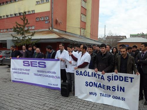 Muş Tabip Odası, Diş Hekimleri Odası Muş Şubesi, Muş Aile Hekimleri Derneği ve Sağlık ve Sosyal Hizmet emekçileri Sendikası Muş Şubesi ortak basın açıklamasında düzenleyerek sağlıktaki şiddet olaylarına ve diğer sorunları dile getirdiler