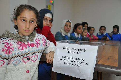 Muş Merkeze bağlı Güzeltepe Köyü İlkokulu öğrencileri, yardıma muhtaç insanlar için yardım kampanyası başlattı