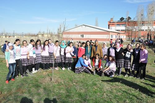 Muş Selcan Hatun Kız Meslek Lisesi öğrencileri, öğretmenleri ile birlikte ağaç diktiler. 18 dönümlük okul arazisine 300 çam ağacı fidanı dikildi
