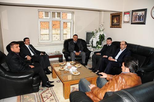 Muş Defterdarı Mustafa Yumuşak, 7 Haziran´da yapılacak olan genel seçimler için görevinden istifa eden Fatih Cengiz´in yerine Muş Ticaret ve Sanayi Odası Yönetim Kurulu Başkanlığına seçilen Özcan Sayılgan ziyaret etti