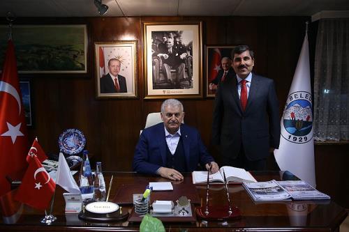 Yapılan konuşmaların ardından Başkan Asya ziyaret anısına Başbakan Yıldırım’a hediye takdim etti. Başbakan Yıldırım da başarılı çalışmalarından dolayı Başkan Asya’ya teşekkür plaketi verdi.
