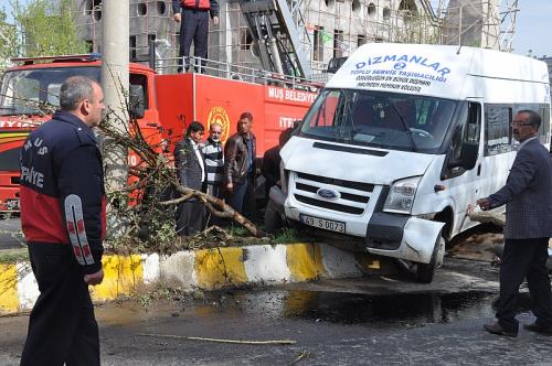 Muş’ta öğrenci servisi kaza yaptı. Kaza ile ilgili alınan bilgilere göre sabah saatlerinde Ticaret Meslek Lisesi öğrencilerini taşıyan Saddam Dizman idaresindeki 49 S 0073 plakalı öğrenci servisi sürücüsü İstasyon Caddesi Barakabaşı Mevkii’nde önüne aniden çıkan araca çarpmamak için manevra yaptı. Refüje çıkan minibüs, elektrik direğine çarparak durabildi. Kazada servis sürücüsü Saddam Dizman ile 14 öğrenci yaralandı. Olay yerine çağrılan ambulanslarla Muş Devlet Hastanesi’ne kaldırılan yaralı öğrenciler burada tedavi altına alındı.