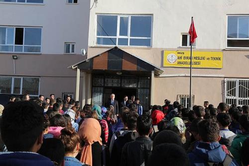 Muş Valisi Aziz Yıldırım, Ahi Evran Mesleki ve Teknik Anadolu Lisesi´ni ziyaret ederek, öğrencilerle bayrak törenine katıldı
