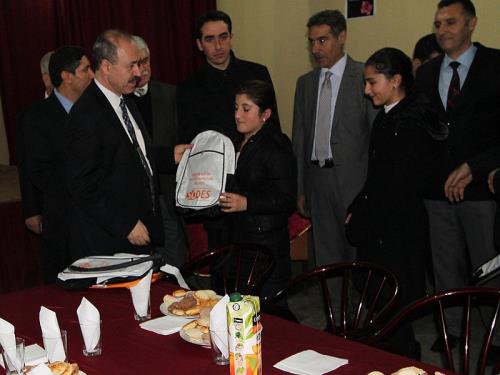 Vali Vedat Büyükersoy, İl Milli Eğitim Müdürlüğü ile Köylere Hizmet Götürme Birliği işbirliğinde yürütülen “Gençlik Eğitim ve Etüd Merkezleri” Projesi çerçevesinde öğrencilere eğitim materyalleri dağıttı. Malzemelerin dağıtımı için düzenlenen törende bir konuşma yapan Vali Vedat Büyükersoy, projenin yaklaşık maliyetinin 420 bin lira olduğunu belirtti. 2 lise ve 2 ortaokulun pilot okul seçildiğini açıklayan Vali Büyükersoy, şunları söyledi: